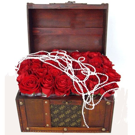 סידור פרחים מיוחד מעוצב מוורדים בתוך תיבה מעץ מלא יוקרתית.