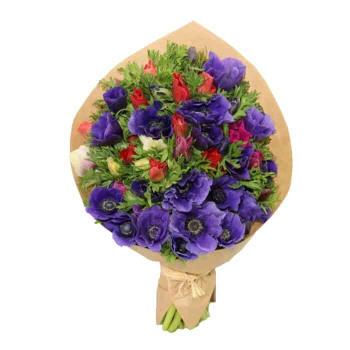 זר כלניות צבעוני ורענן מלא עליזות אביבית! זהו הזר המושלם עבור יום המשפחה, 8 למרץ או פסח עבור אמא, סבתא, אישה, חברה או אחות.